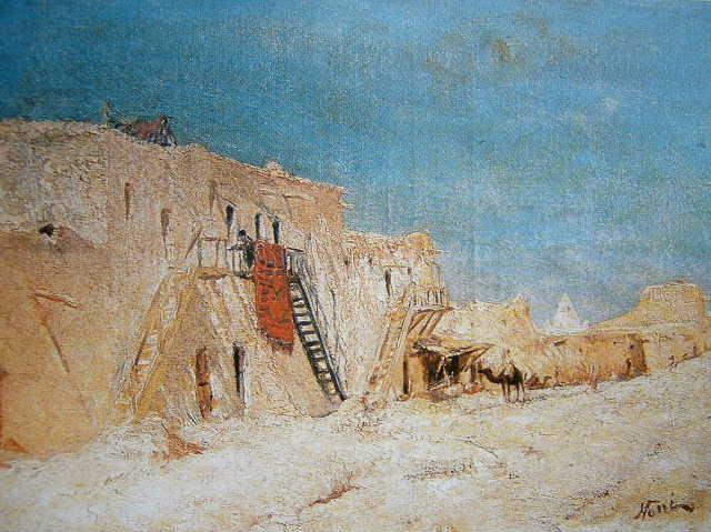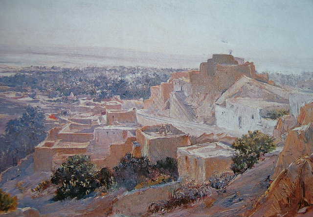 Vue Générale sur Bou-Saada, le matin, huile sur toile, 32x100