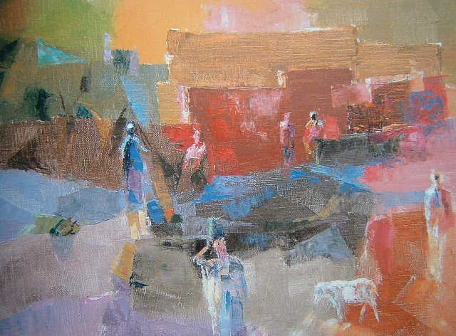 Mohamed Bouzid (1929 - vit à Paris), le Ksar, huile sur toile, 38x45 |
