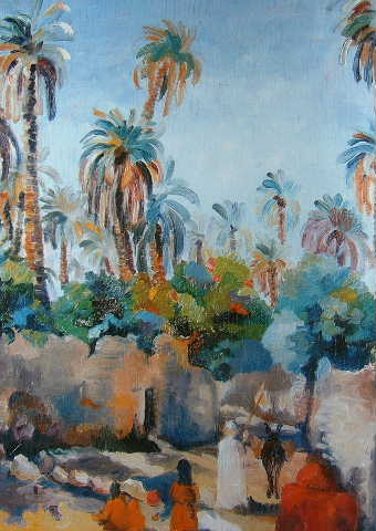 Suzanne Delbays (1907-1994), Dans la palmeraie, huile sur panneau, 55x46 |